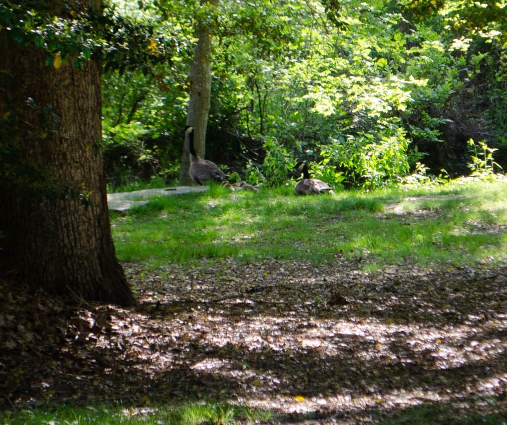 Look closely at the above image. There geese and goslings camouflaged by the dappled light.